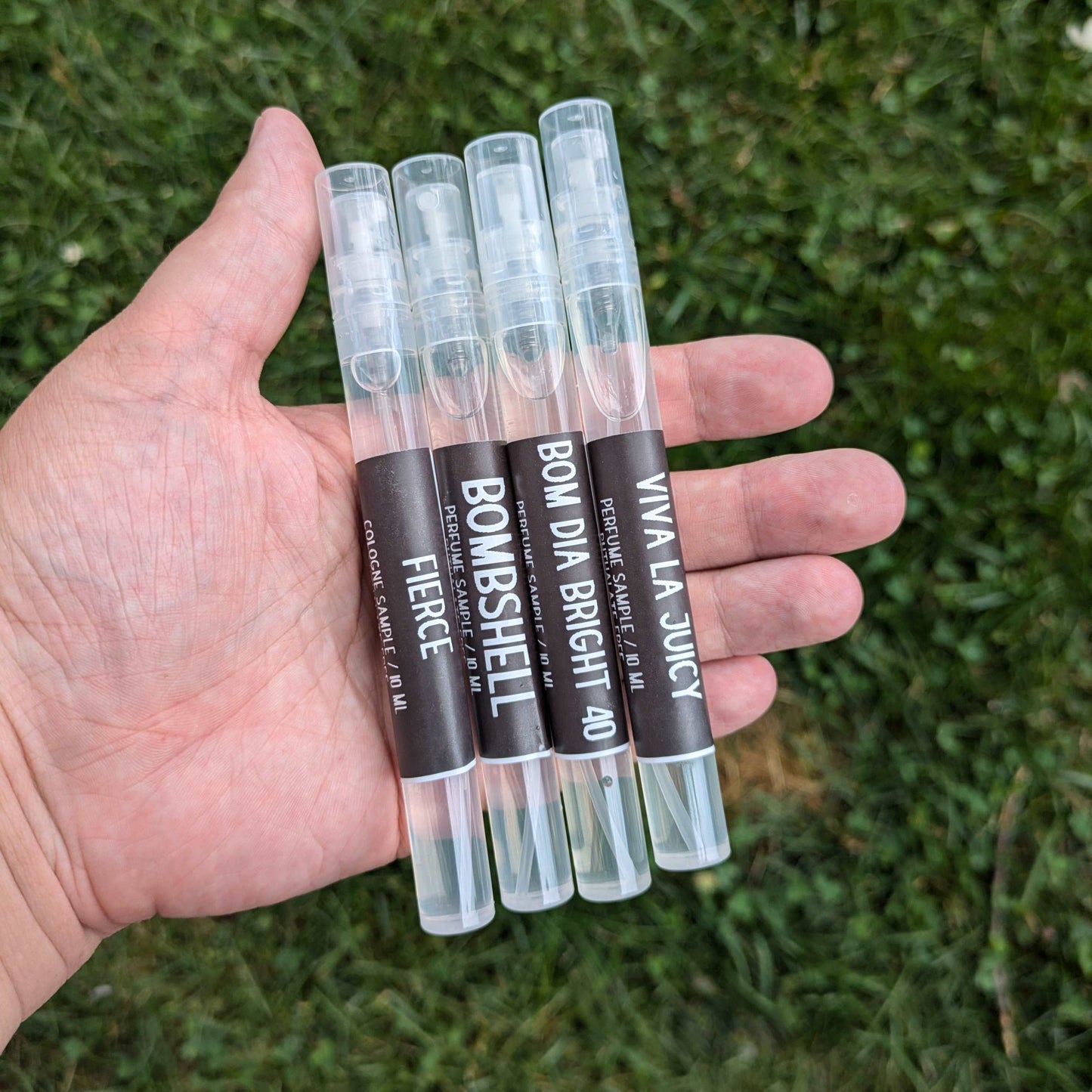 These perfumes smell amazing and come in multiple sizes! The sample size is great for a travel size in your purse, gym bag, carry-on, car, and more!