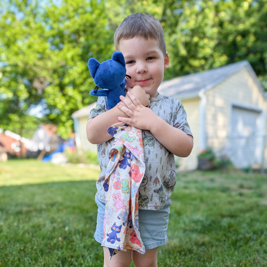 This cozy lovey features a soft, double-sided sherpa blanket paired with a sweet highland cow plush — the perfect mix of rustic charm and snuggly comfort. Each lovey is handmade with love and designed for little hands to hold, cuddle, and treasure.