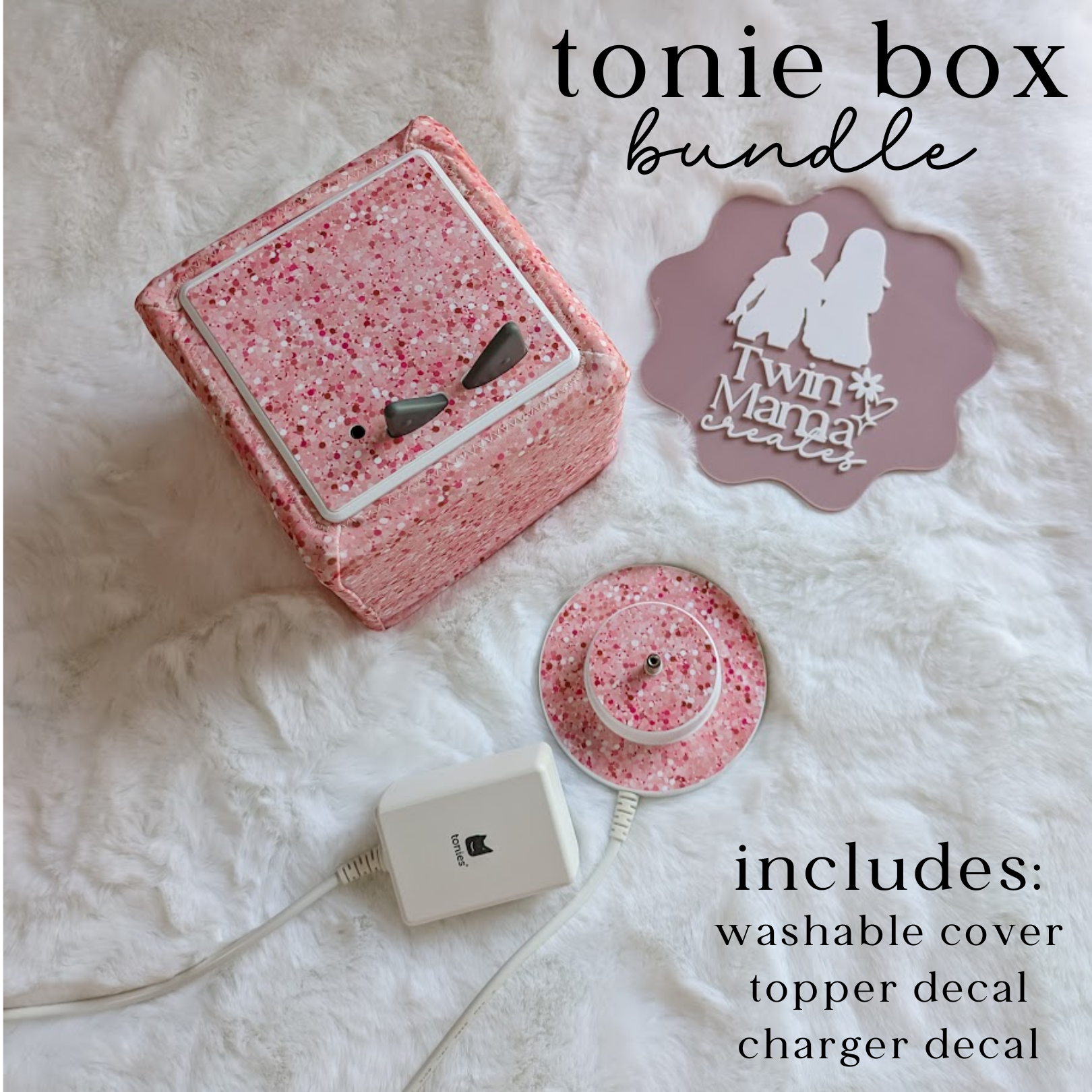 Keep your Toniebox 1 squeaky clean with this washable cover! Hand sewn and custom printed for each order, the cover can be designed to fit the personality of your child(ren)! Plus keep your box looking new with the topper decal and charger decals while adding a personal touch. Easy to apply and remove without leaving residue. Elevate your Toniebox experience today!